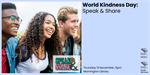 World Kindness Day: Speak & Share - Mornington Library 13 Nov 2025 Speak & Share brings a dynamic mental health workshop for 14–18s this World Kindness Day—real talk, real tools, real connection. Mornington Library, Vancouver Street, Mornington 3931 Tagged as: , Workshop